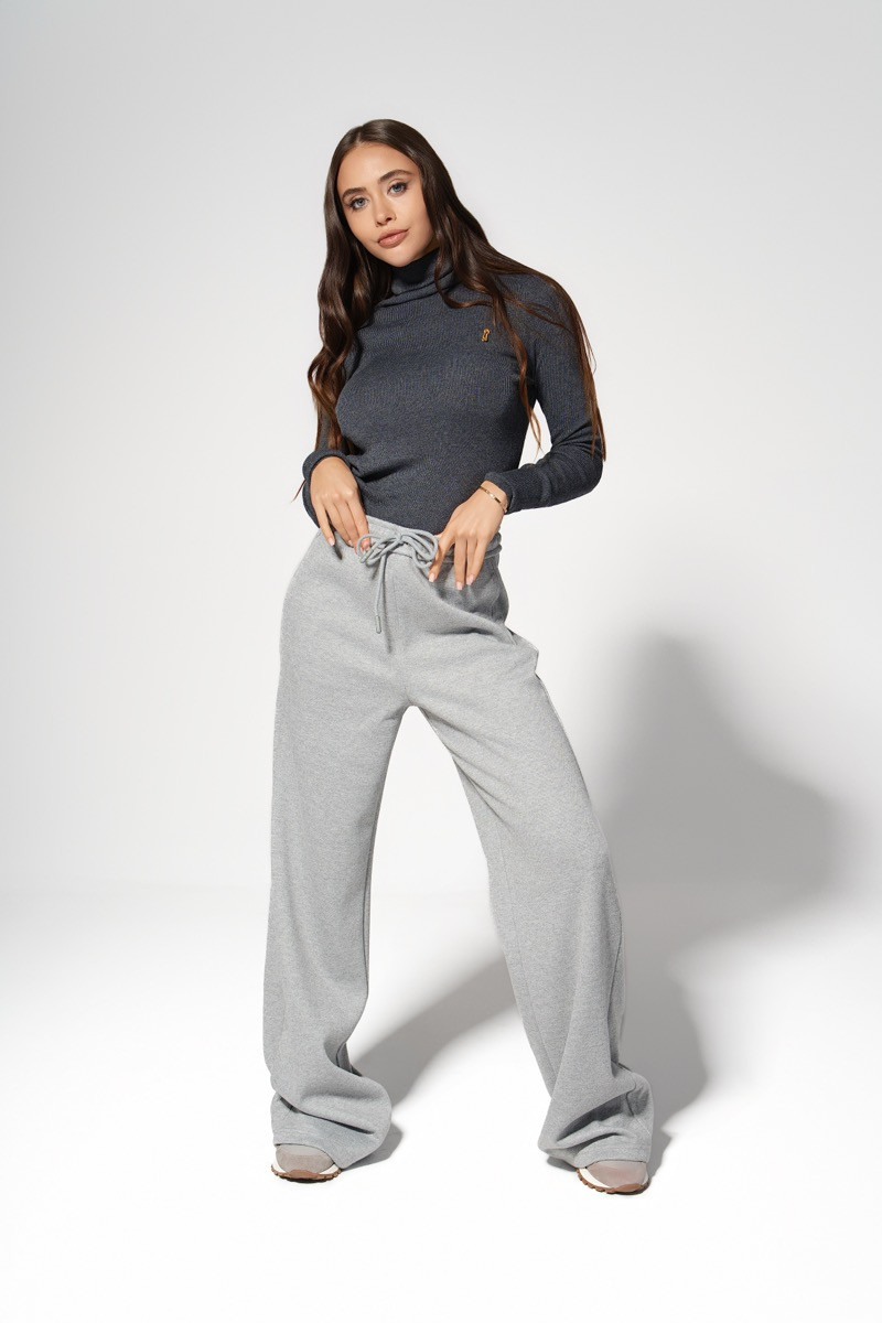 Блуза от фин рипс в тъмносив нюанс, създадена да подчертае силуета със своята еластична и прецизно прилепваща материя. Стоящата яка придава модерна, елегантна визия, а минималистичният дизайн позволява лесно комбиниране с различни стилове.Блузата е лека, удобна и подходяща за ежедневие, офис визии или casual комбинации. Малката златиста емблема отпред добавя изискан детайл, който придава фин завършек на модела.