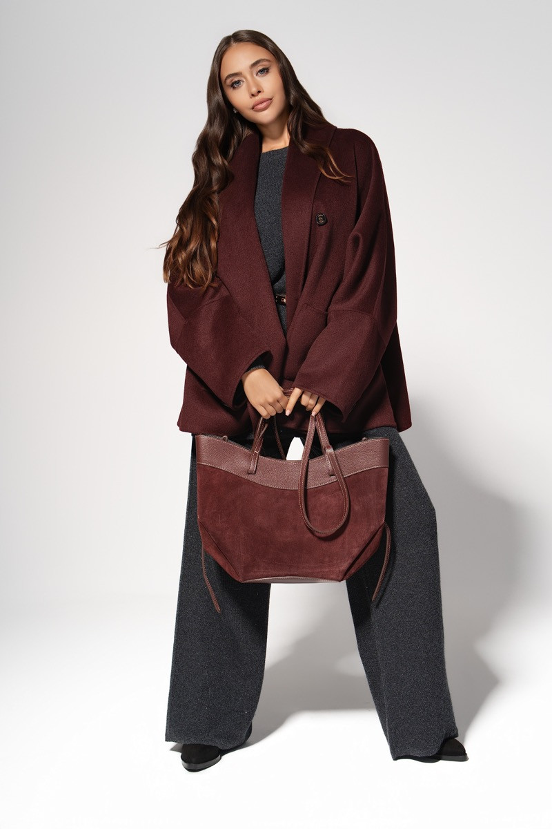 Burgundy Oversize Wool Coat е палтото, което effortlessly съчетава лукс, комфорт и модерна естетика. Създадено в изтънчен бордо нюанс, то внася дълбочина и елегантност във всяка визия – от ежедневни knit сетове до по-структурирани комбинации.Силуетът е oversize и прецизно изграден, така че да пада красиво и свободно по тялото, като осигурява усещане за уют и лекота. Широките ръкави, големите ревери и обемната форма придават съвременен, леко архитектурен характер. Практичните джобове и фините детайли завършват дизайна с внимание към всяка линия.