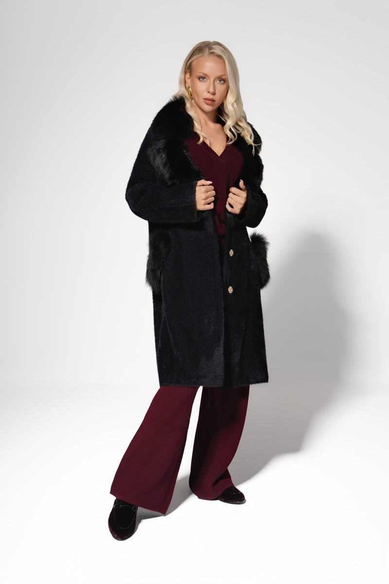 Стилно и изискано дълго палто, създадено да подчертае женствеността и класа във всеки детайл. Изработено от висококачествен материал, то предлага мекота, топлина и изключителен комфорт в студените дни. Елегантната яка и маншети от естествен косъм придават на модела луксозен характер и подчертават силуета с фин, но впечатляващ акцент.