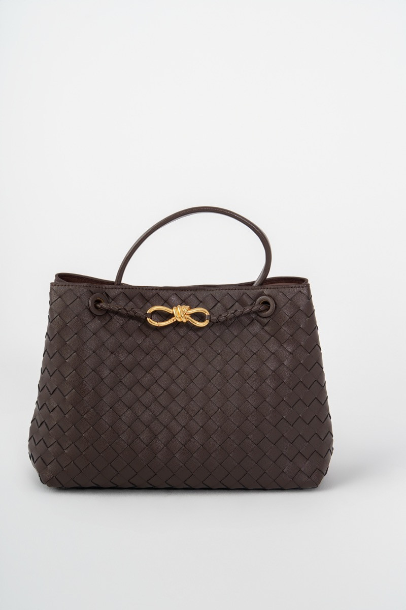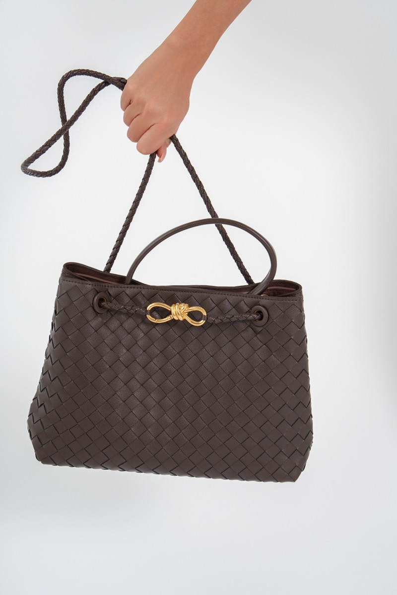Venetta е елегантна чанта от естествена кожа с изискан плетен дизайн, който носи усещане за майсторство и неподвластен стил. Моделът впечатлява с прецизната си структура, мека форма и акцент от златиста метална закопчалка във форма на стилизиран възел. Чантата разполага с къси дръжки и дълга плетена дръжка, което позволява носене по различни начини според стила и повода. Изключително функционална, луксозна и универсална – перфектното допълнение към всеки аутфит.